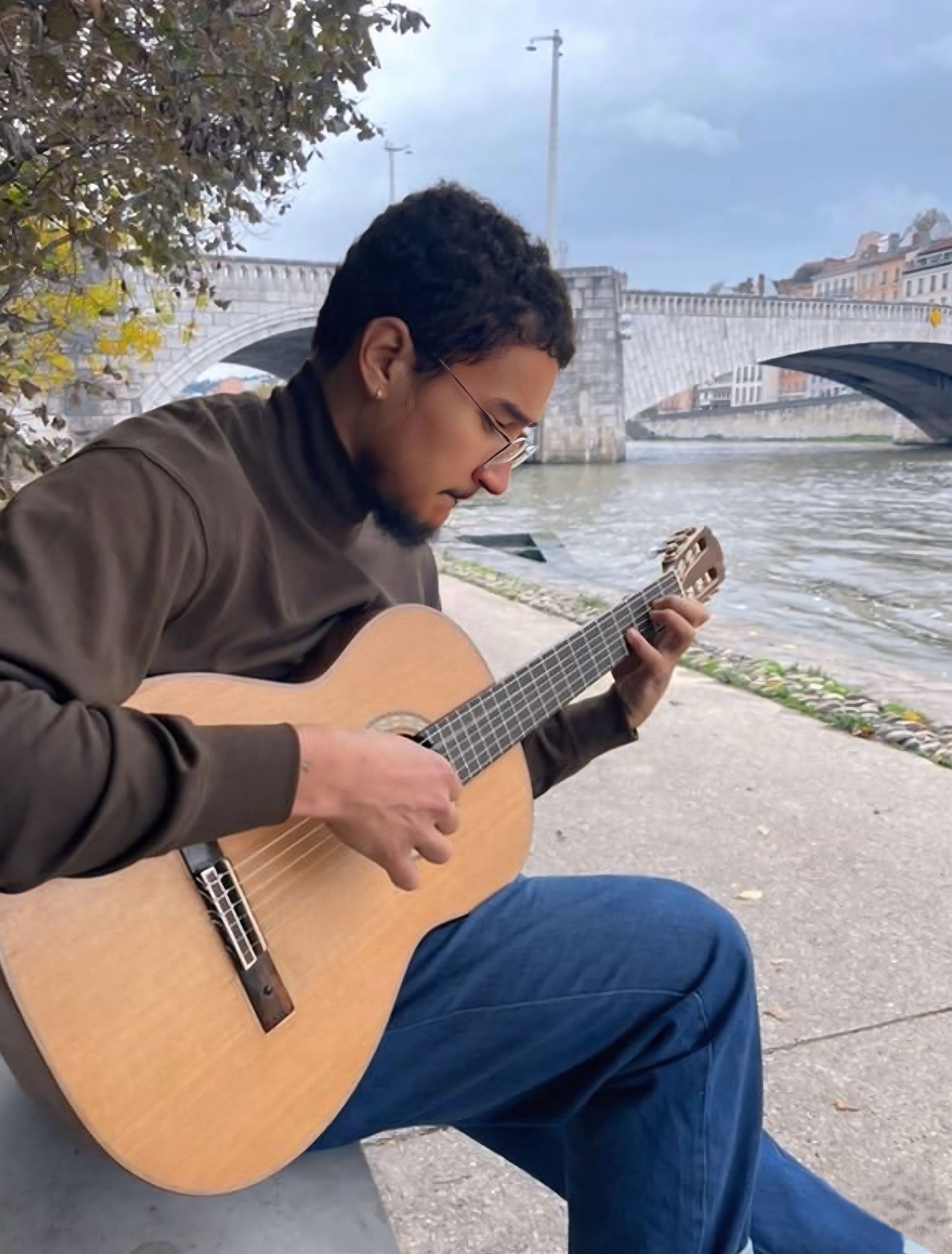 Nicolas a découvert la guitare à l’âge de 12 ans, en suivant l’enseignement d’un professeur spécialisé en guitare classique. Ces premières années lui ont permis d’acquérir une solide maîtrise technique, mais aussi une sensibilité particulière pour les nuances et les subtilités de l’instrument. Après cinq années de cours particuliers, son intérêt pour le son et la création musicale l’a conduit à se tourner vers un cursus de technicien son en studio. Cette formation lui a ouvert les portes de la production et de l’arrangement, et a nourri son désir d’aller plus loin dans la composition. Il a ainsi poursuivi ses études par un master en composition de musique à l’image, domaine où il a pu allier sa passion pour la guitare à l’art de raconter des histoires par le son.